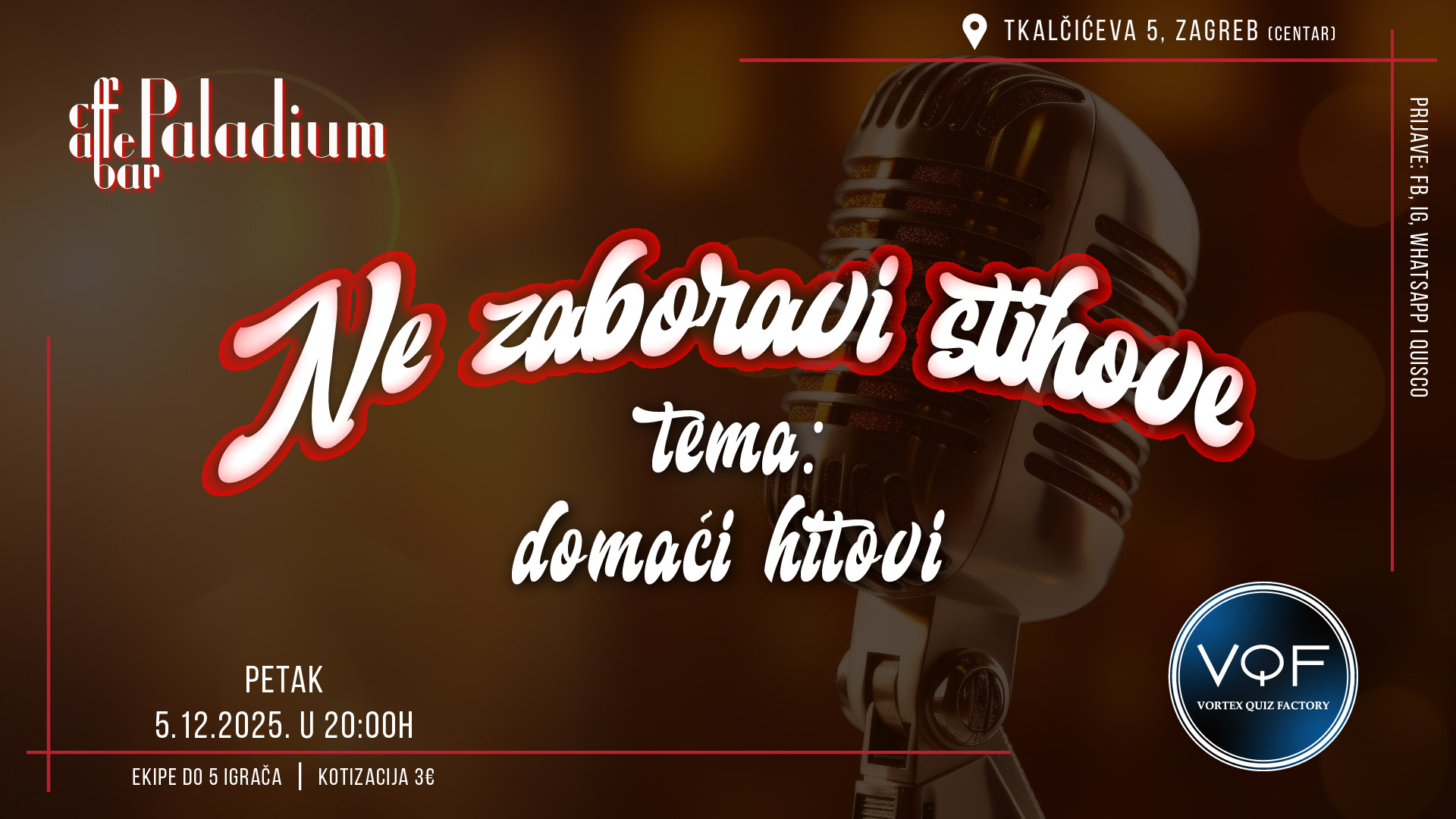 Srijedom, 1.10. – 17.12.2025. u 20h, format 11+1